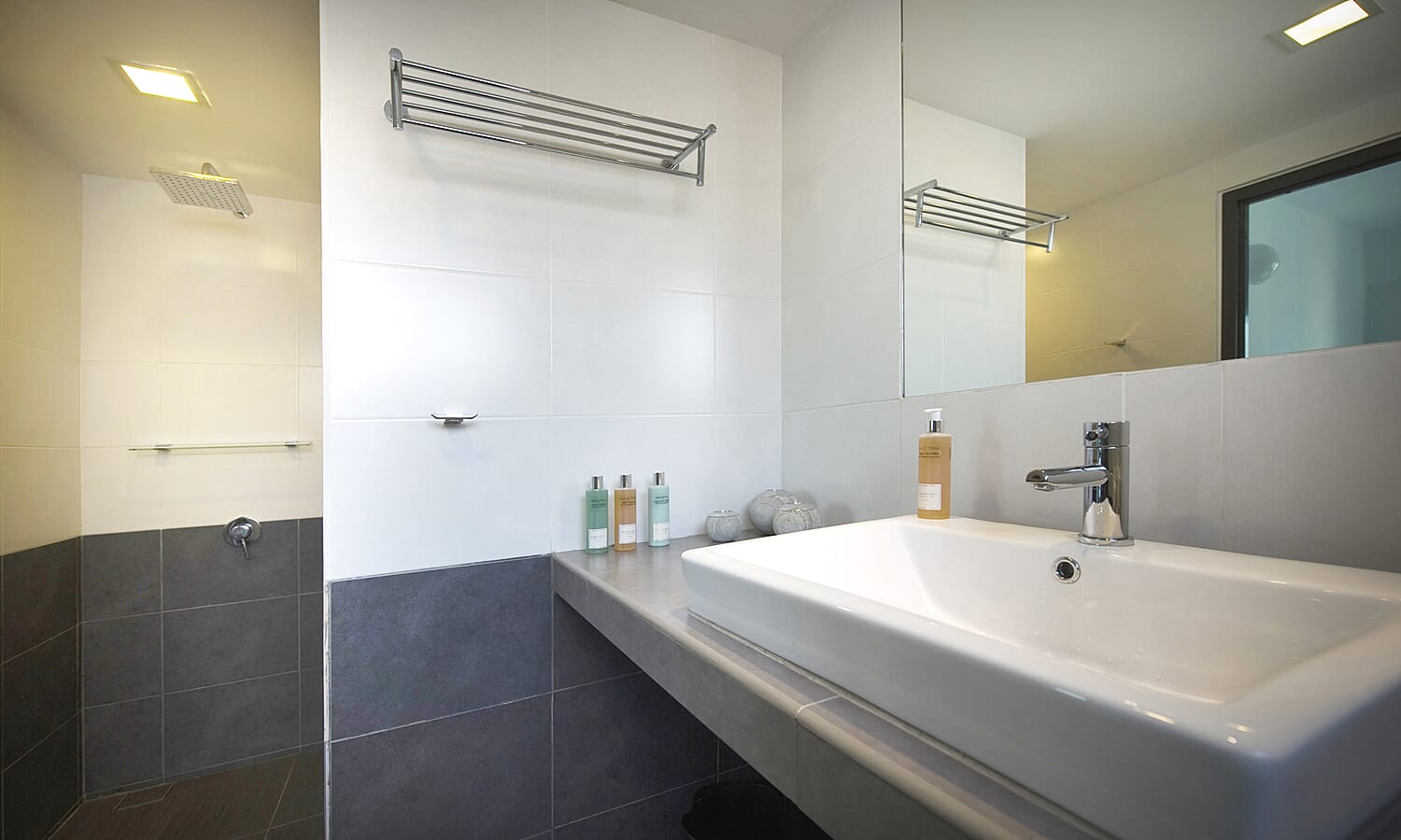 There are 2 bathrooms, with hot showers, large basins and dual-flush toilets.
