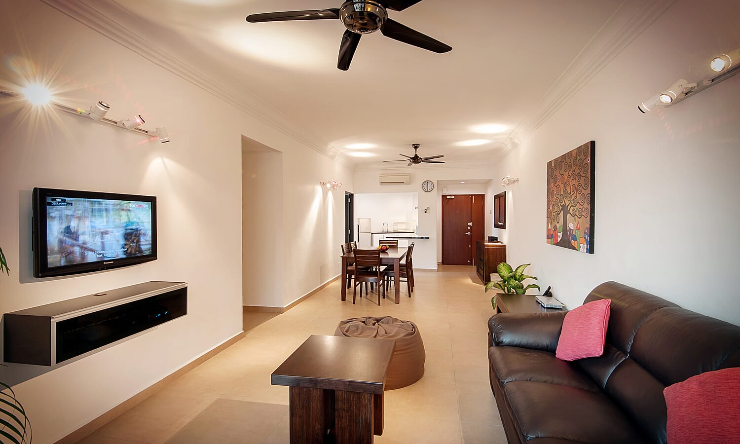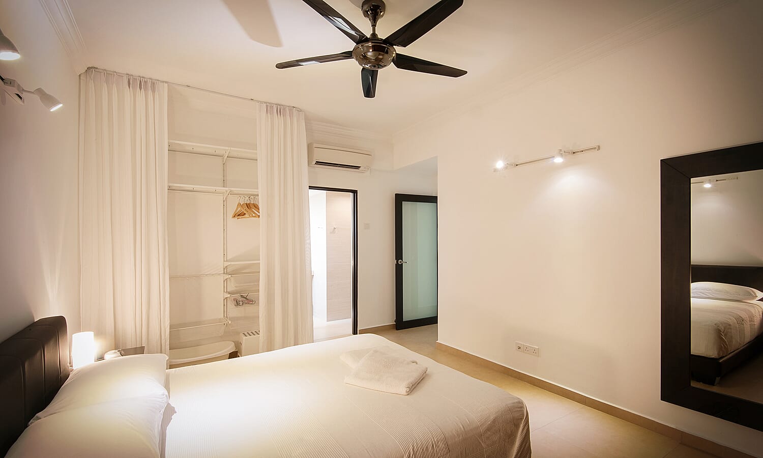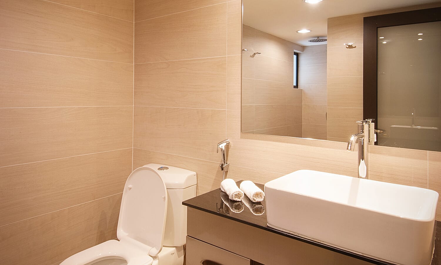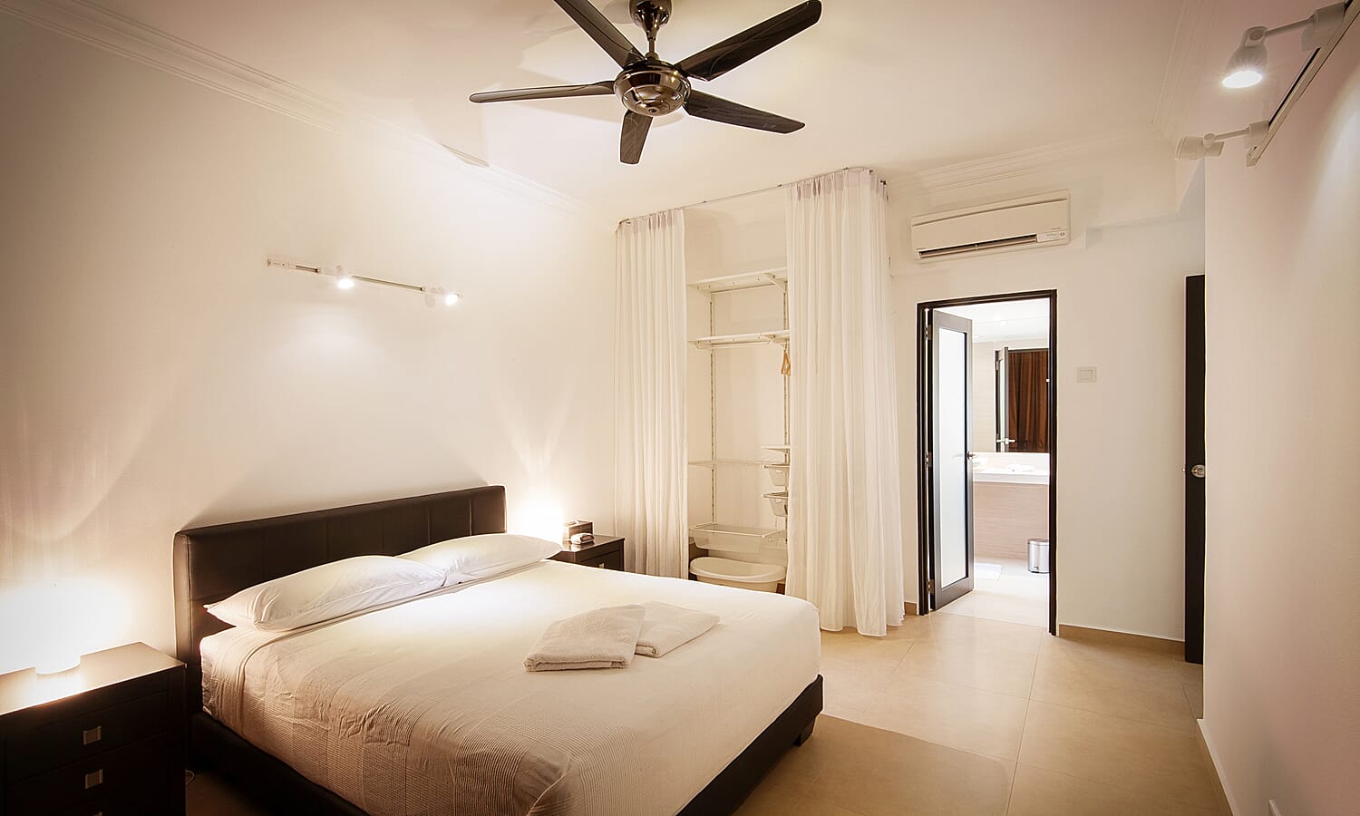 There are 2 bathrooms, tastefully finished with floor to ceiling textured tiles for a spa-like feeling. They have powerful hot showers, large basins, twin-flush toilets and shaver/hair dryer sockets.