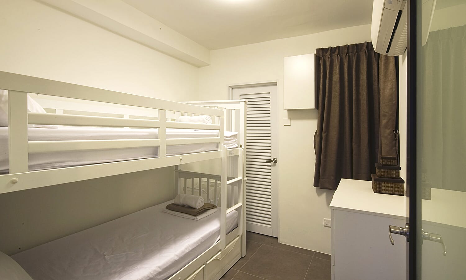 The 4-bedrooms sleep 8 people in two queen size bedrooms, one twin bedroom and one bunk-bedroom. All the bedrooms are pictured in the photos above.