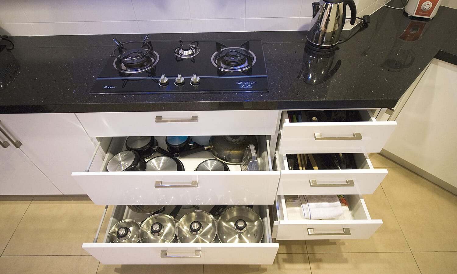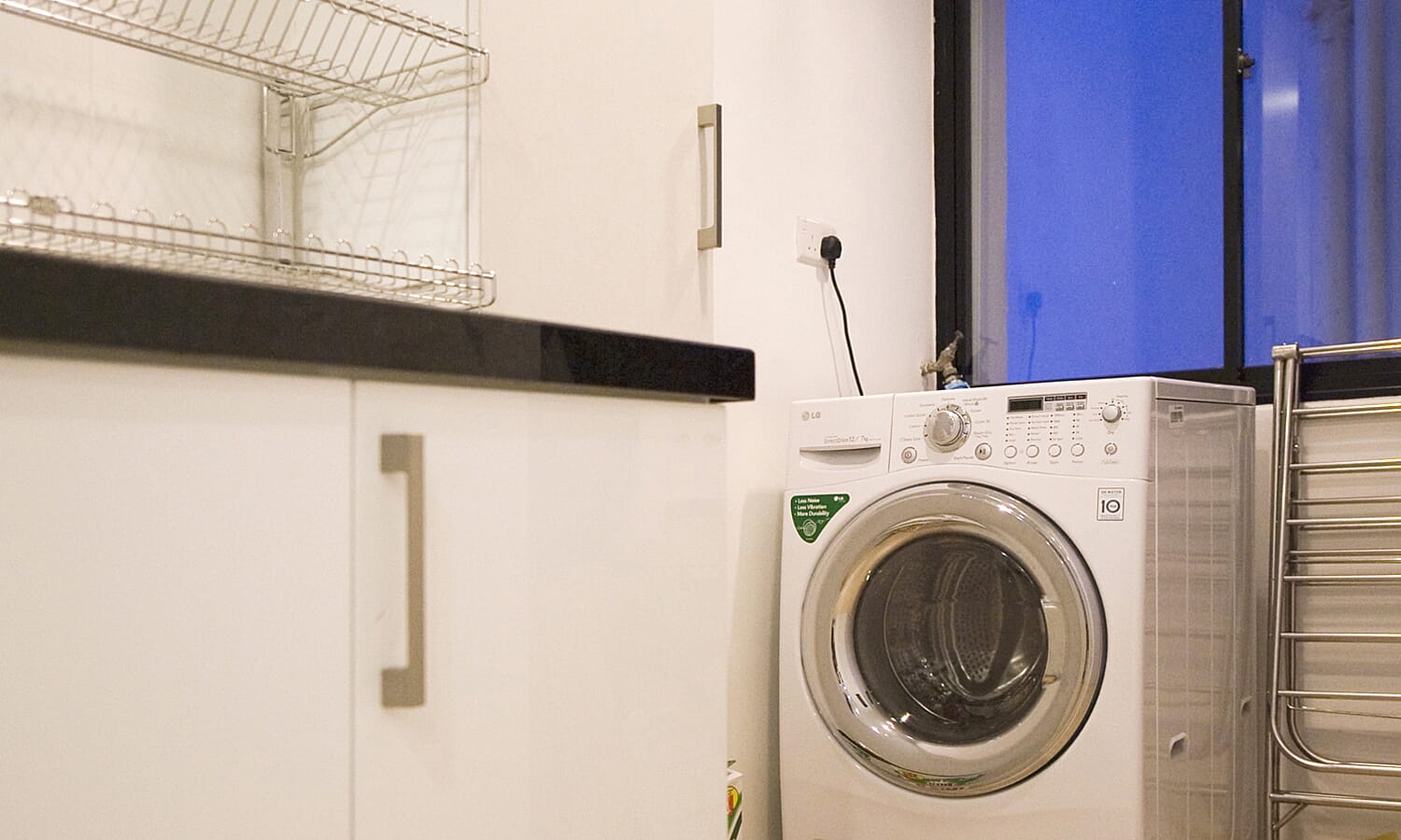 A solid granite worktop surrounds the kitchen, fully equipped with large fridge/freezer, microwave, kettle, Dualit toaster, blender, 3-burner gas stove and large capacity LG washer/dryer.